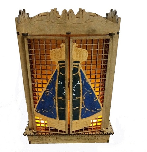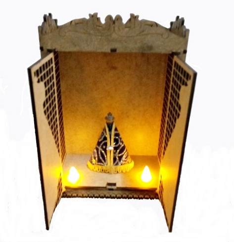 Capela Nossa Senhora Aparecida em MDF Pintado. Incluso 2 mini luminária de Led - de plástico. Mini Nossa Senhora dentro da capela não incluso no produto. Prazo de fabricação: 3 dias úteis.